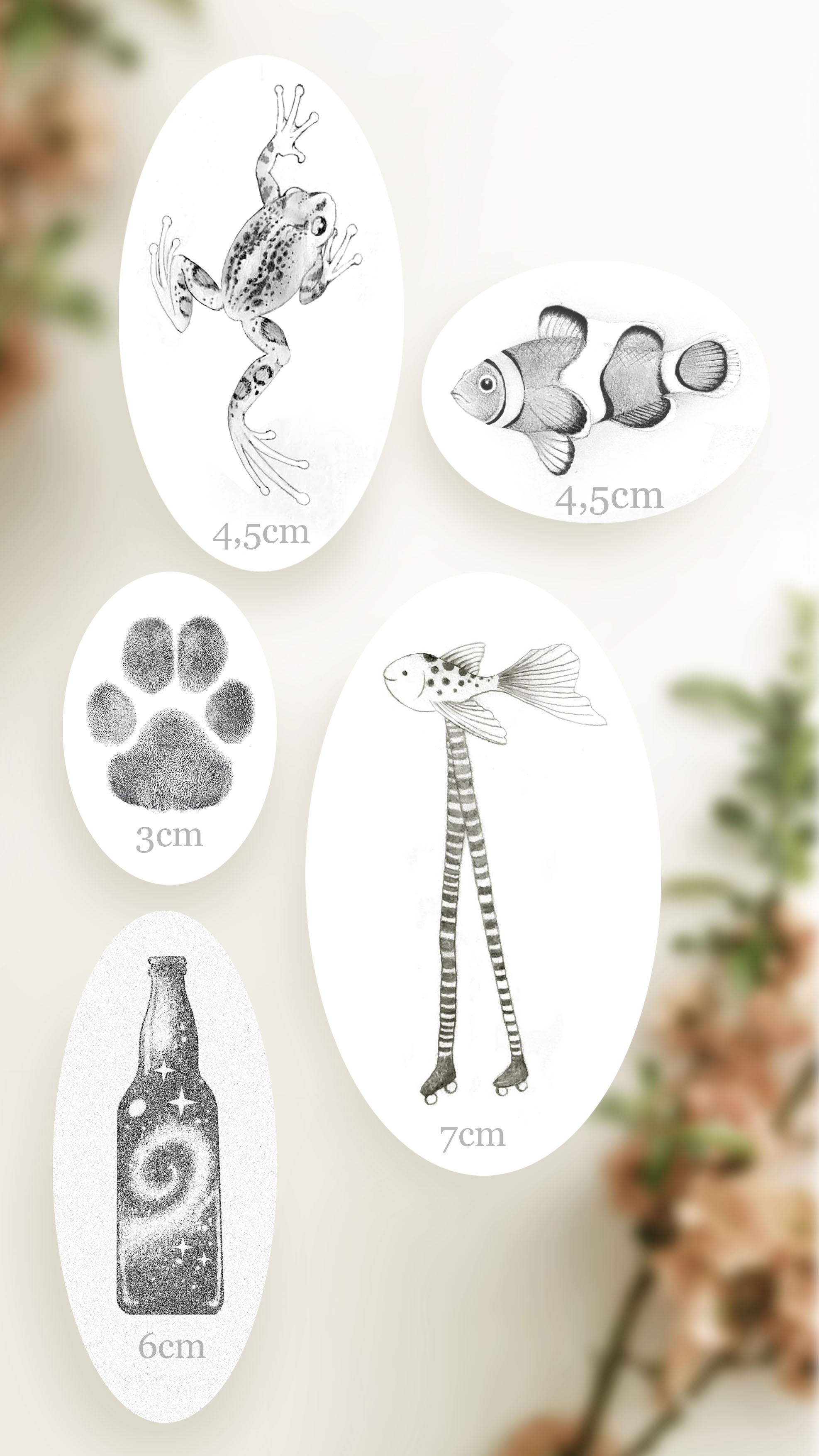 Você pode escolher um dos desenhos disponibilizados AQUI. Uma vez reservados, esses desenhos são exclusivos não serão repetidos em outra pessoa (exceto quando escolhidos por duas pessoas que irão se tatuar juntas)